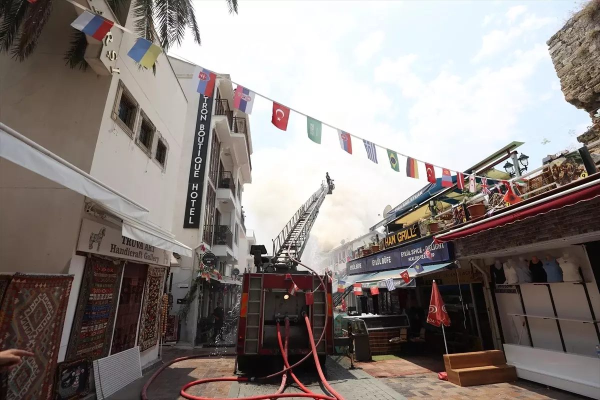 Antalya Kaleiçi'ndeki otelde başlayan yangın, itfaiye ekipleri tarafından kontrol altına alınmaya çalışılıyor.