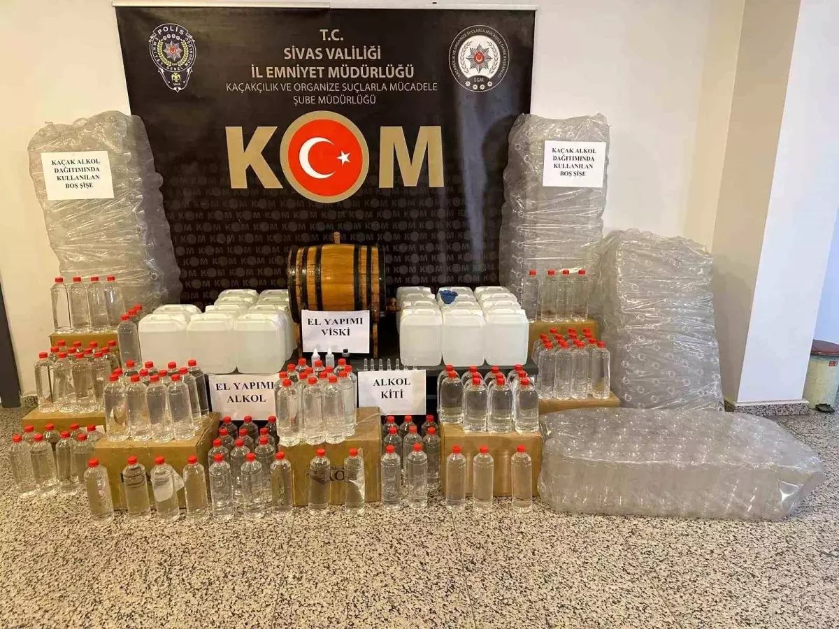 Sivas'ta düzenlenen operasyonda 215,5 litre sahte alkol ele geçirildi, 2 kişi tutuklandı.