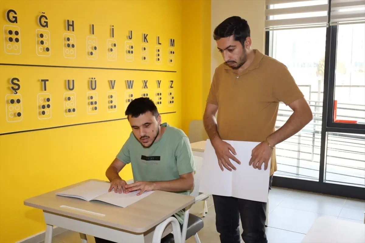 Gonca Engelsiz Yaşam Merkezi'nde görme engelli bireylere, deneyimli eğitmenle etkili eğitim veriliyor.