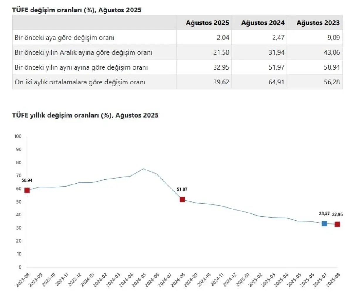 Enflasyon ağustos ayında yüzde 2,04 arttı, yıllık bazda yüzde 32,95 oldu.