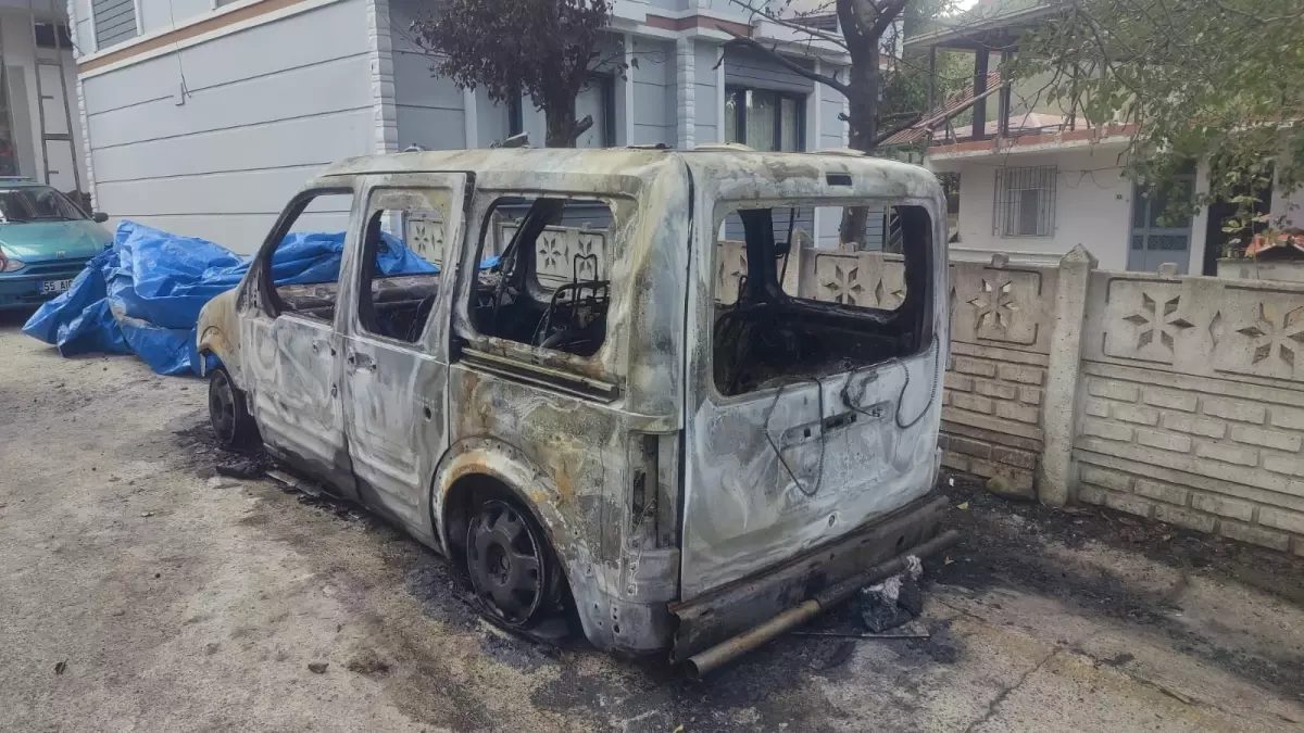 SAMSUN'un Salıpazarı ilçesinde, şehit Özel Harekat polis memuru Mesut Yılmaz'ın babası Mehmet Yılmaz'a ait hafif ticari araç, park halindeyken yandı.