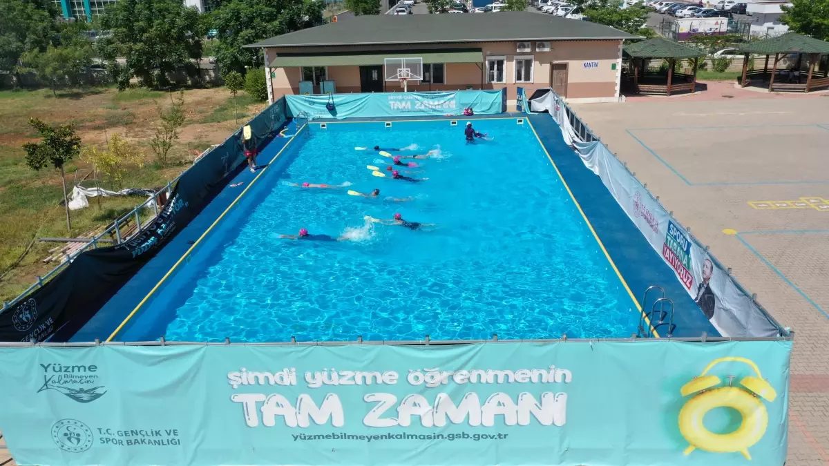 Gençlik ve Spor Bakanlığı'nın projesiyle Antalya'da çocuklar için 14 portatif yüzme havuzu açıldı.