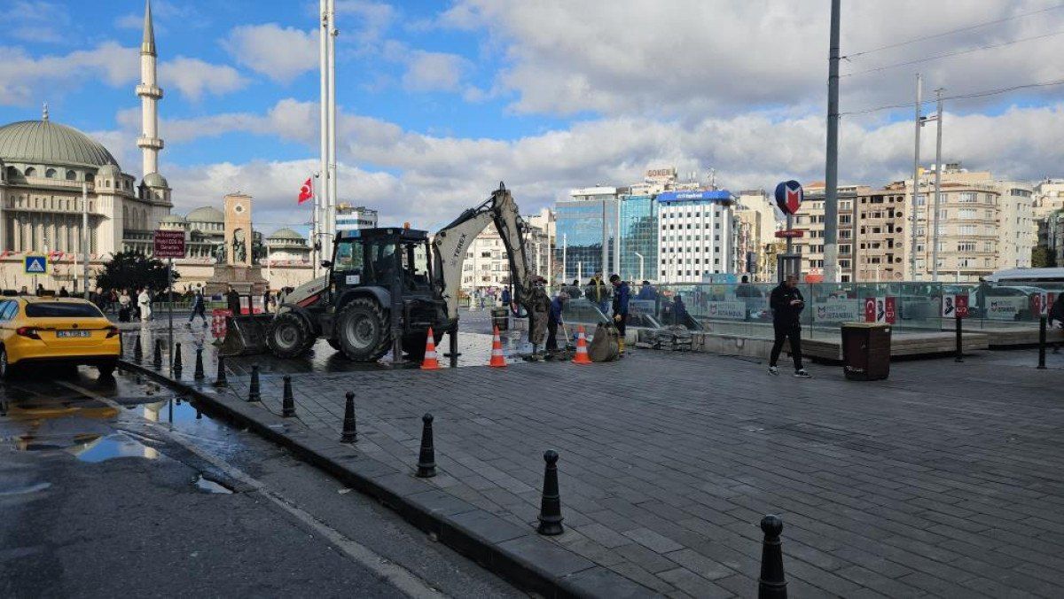 İstanbul Büyükşehir Belediyesi (İBB) ekipleri tarafından Taksim’de yapılan çalışmalar esnasında iş makinesinin su borusunu patlatması nedeniyle meydan sular altında kaldı.