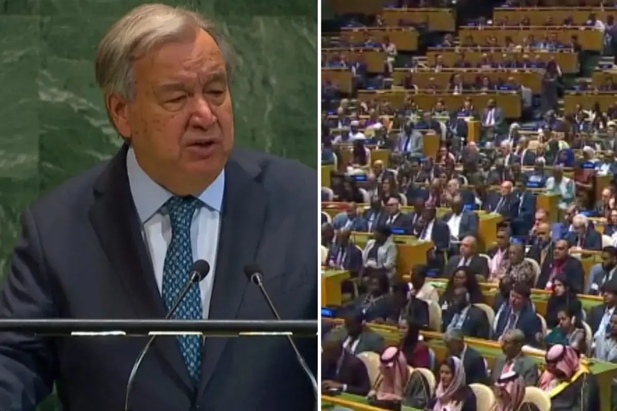 BM Genel Sekreteri Antonio Guterres, açılış konuşmasında örgütün tarihi sınavlarla karşı karşıya olduğunu belirterek, “Dünya bir çöküşe gidiyor. Birleşmiş Milletler ilkeleri kuşatılmış durumda ve barış ile ilerlemenin temelleri çökmekte… 80 yıl sonra, BM kurucularının karşılaştığı aynı zorluklarla karşı karşıyayız” dedi.
