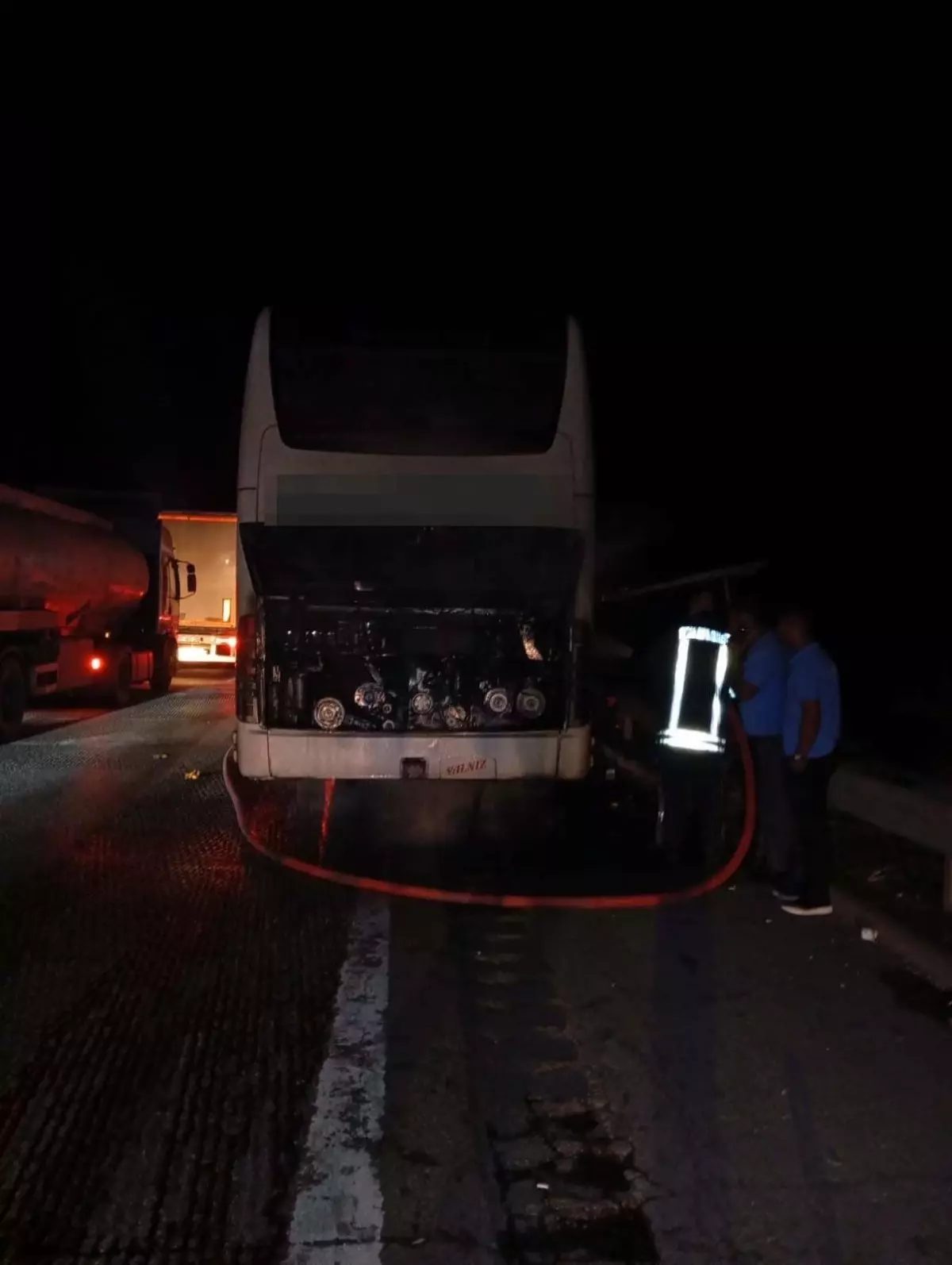 Olay, gece saatlerinde Tarsus- Pozantı Otoyolu Damlama mevkisinde meydana geldi. R.A. yönetimindeki 31 AAB 427 plakalı yolcu otobüsünün motor kısmı, henüz bilinmeyen nedenle alev aldı. Durumu fark eden şoför, otobüsü güvenlik şeridinde durdurdu. İhbar üzerine olay yerine sağlık ve itfaiye ekibi sevk edildi. Yangın, itfaiye ekiplerinin müdahalesi ile kısa sürede kontrol altına alınarak, söndürüldü.