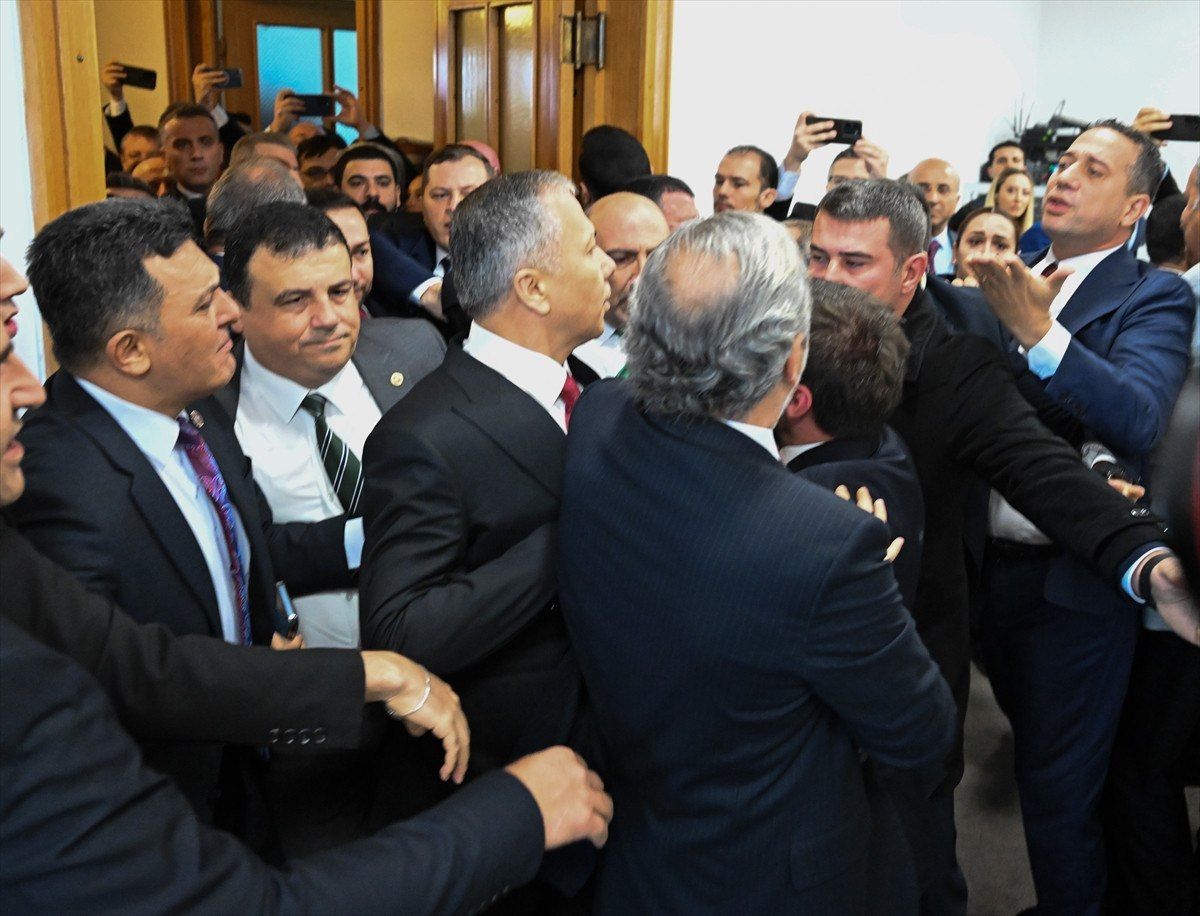İçişleri Bakanı Ali Yerlikaya’nın Komisyon toplantı salonuna girişine CHP’li milletvekilleri engel oldu.