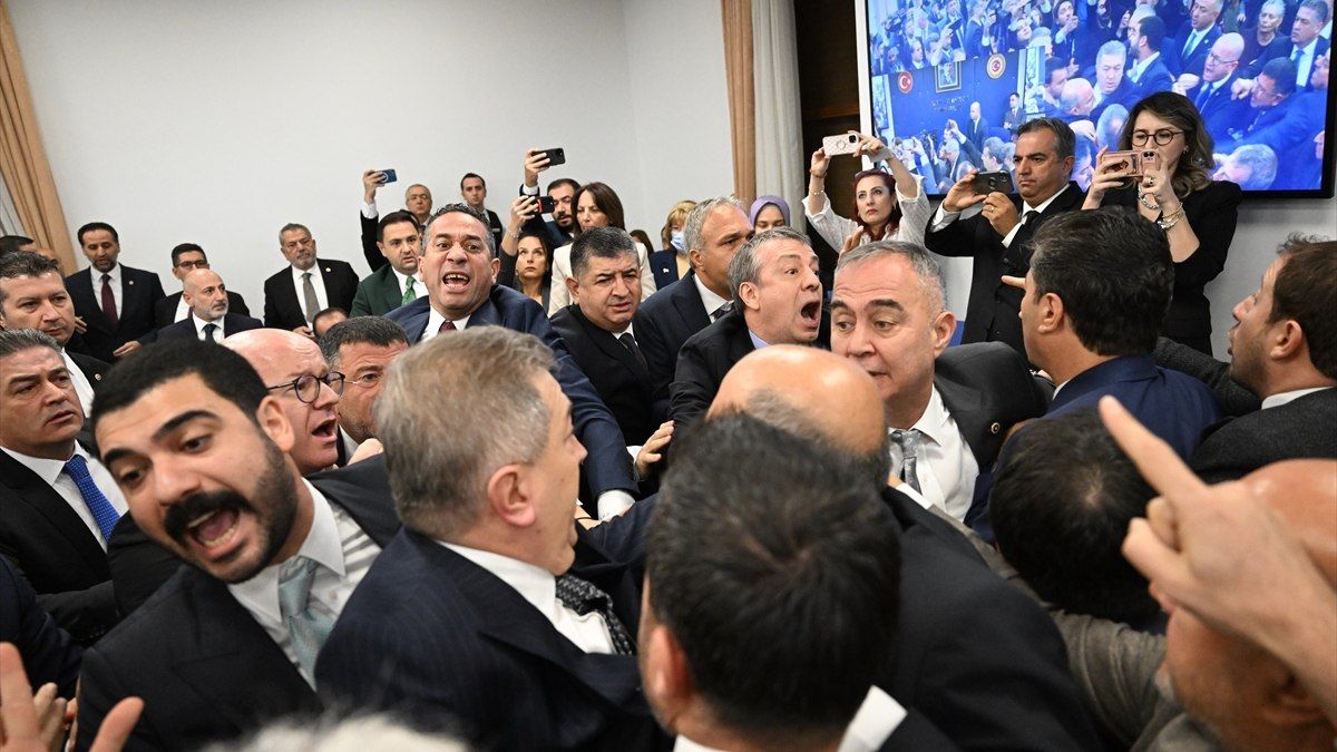 CHP'li vekillerin Bakan Ali Yerlikaya ve beraberindekilerin salona girişini engellemeye çalışmasıyla itişmelerle başlayan İçişleri Bakanlığı'nın 2025 yılı bütçesi görüşmeleri salonda da gergin bir atmosfer altında devam ediyor.
