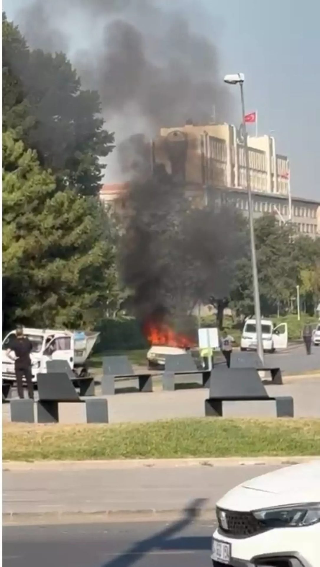 ANKARA’da, psikolojik rahatsızlıkları bulunduğu belirtilen M.E.F., Türkiye Büyük Millet Meclisi (TBMM) önünde otomobilini yaktı. Otomobil kullanılamaz hale gelirken, çok sayıda suç kaydı olduğu ifade edilen M.E.F. gözaltına alındı.