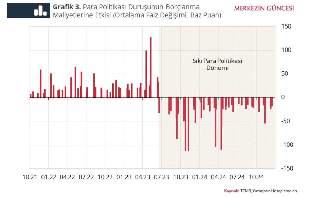 Yapılan analize göre, son parasal sıkılaşma döngüsünün Hazine yeniden ihraç ihalelerinde borçlanma maliyetlerinin ortalamada 40 baz puan düşürdü ve bu kamu maliyesine yaklaşık 6,8 milyar TL katkıda bulundu.