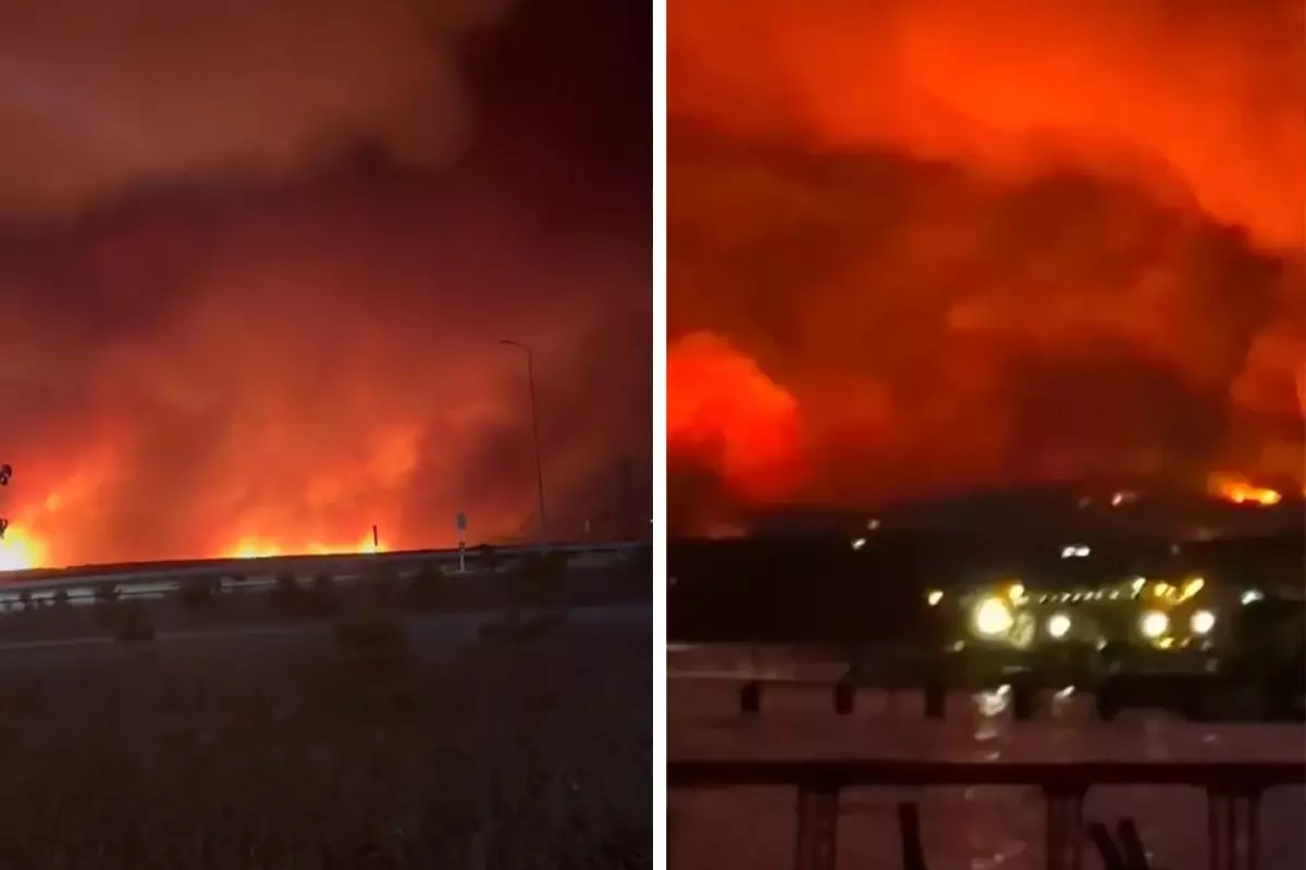 Öte yandan geniş bir alana yayılan yangına ilişkin görüntüler, yangının ulaştığı boyutları gözler önüne serdi. Vatandaşların cep telefonu kameralarıyla çekilen görüntülerde alevlerin geceyi aydınlattığı görüldü.