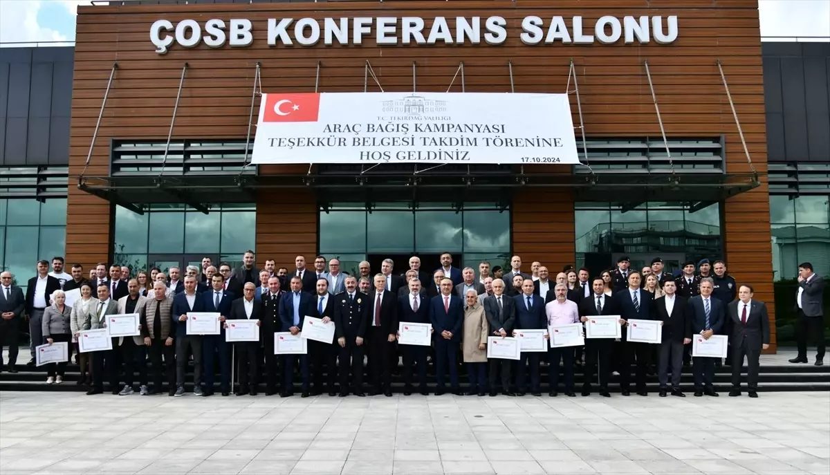 Tekirdağ’da İl Emniyet Müdürlüğü ve İl Jandarma Komutanlığı bünyesinde kullanılması amacıyla başlatılan araç bağış kampanyasına destek veren 94 vatandaşa teşekkür belgesi verildi.