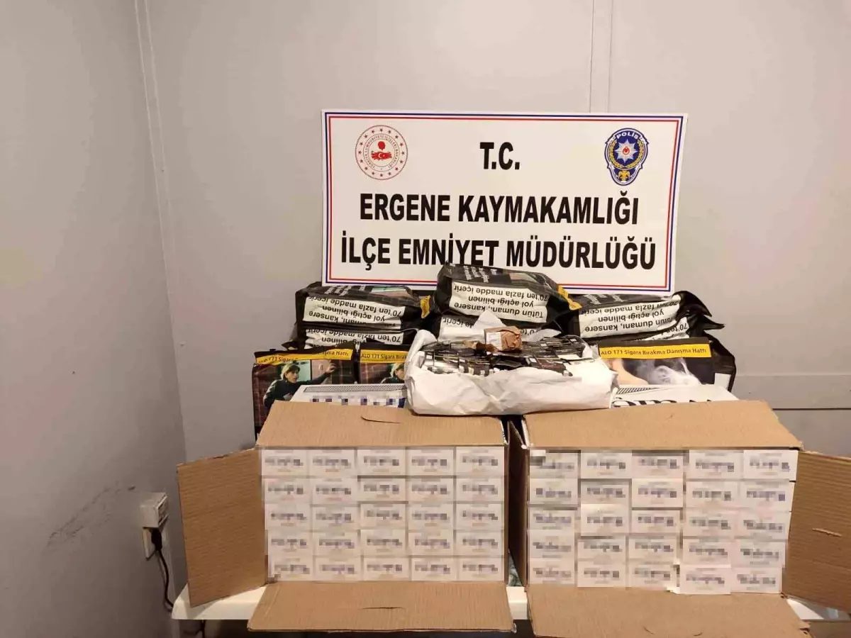 Tekirdağ İl Emniyet Müdürlüğü Ergene İlçe Emniyet Müdürlüğü ekiplerince durdurulan bir araçta yapılan aramada, bandrolsüz tütün ve makaron ele geçirildi.