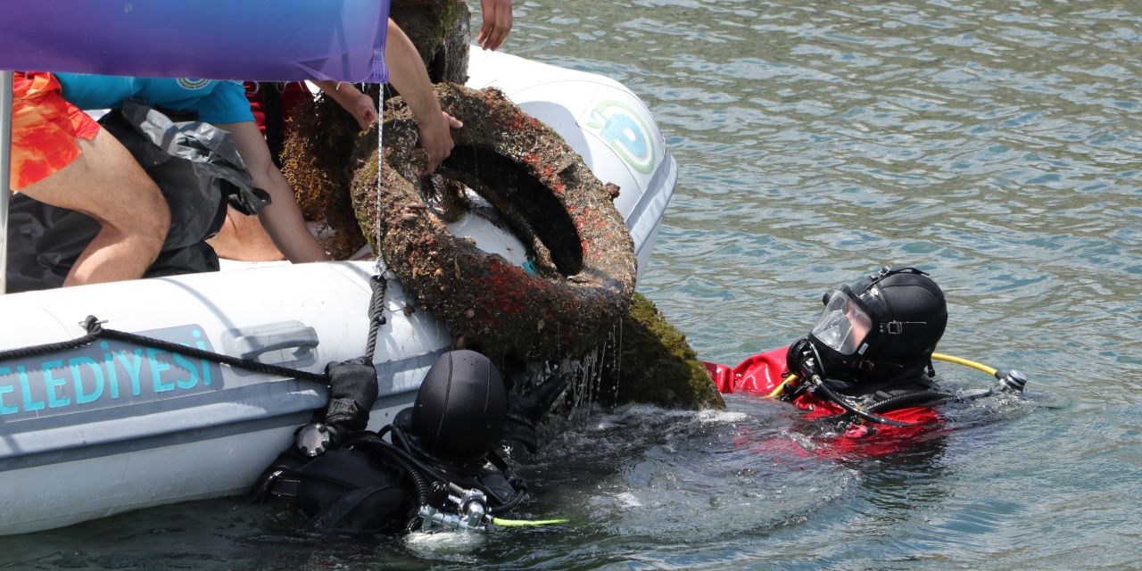 Tekirdağ İl Emniyet Müdürlüğü Deniz Liman Şube Müdürlüğünde görevli kurbağa adamlar tarafından dip temizliği yapılan sahilden çok sayıda araba lastiği ve diğer atık malzemeler çıkarıldı.