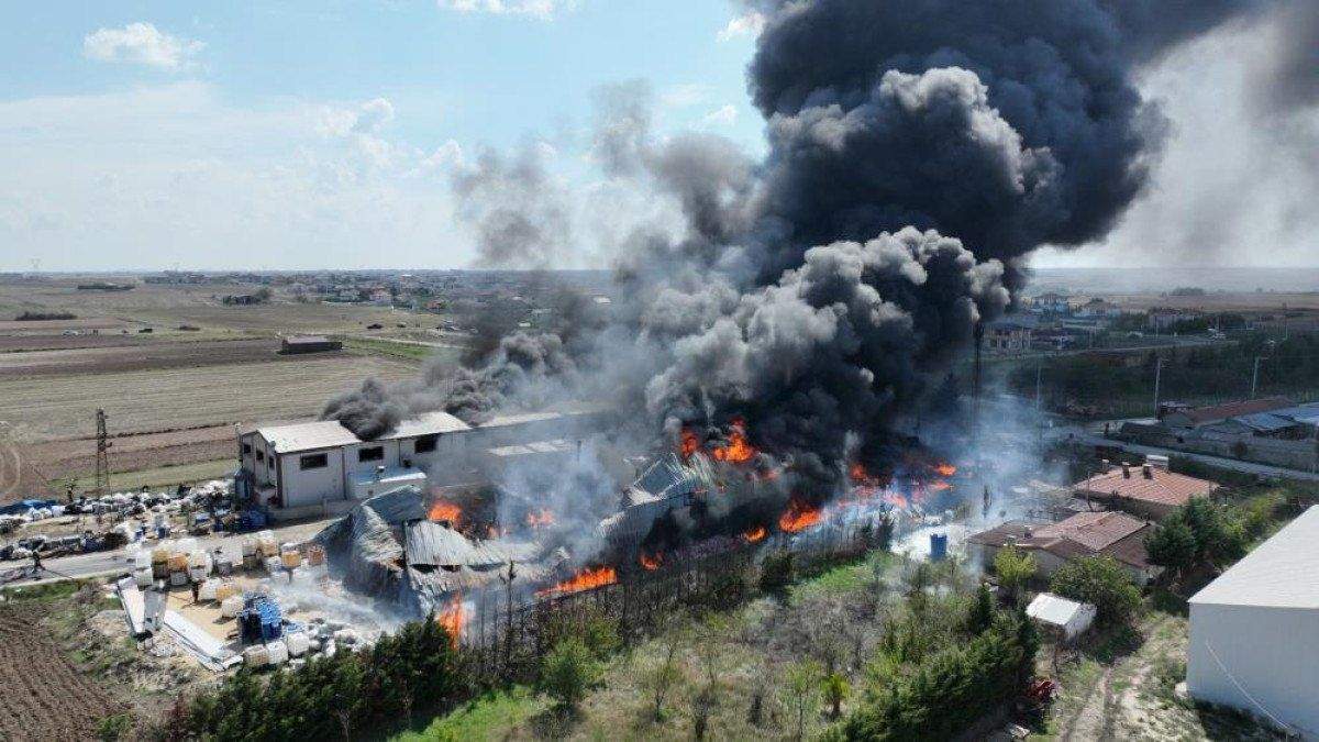 Tekirdağ’ın Kapaklı ilçesinde bir kimyasal fabrikasında çıkan yangın, fabrikanın büyük kısmını sararken, alevler ve dumanlar gökyüzüne yükseldi.