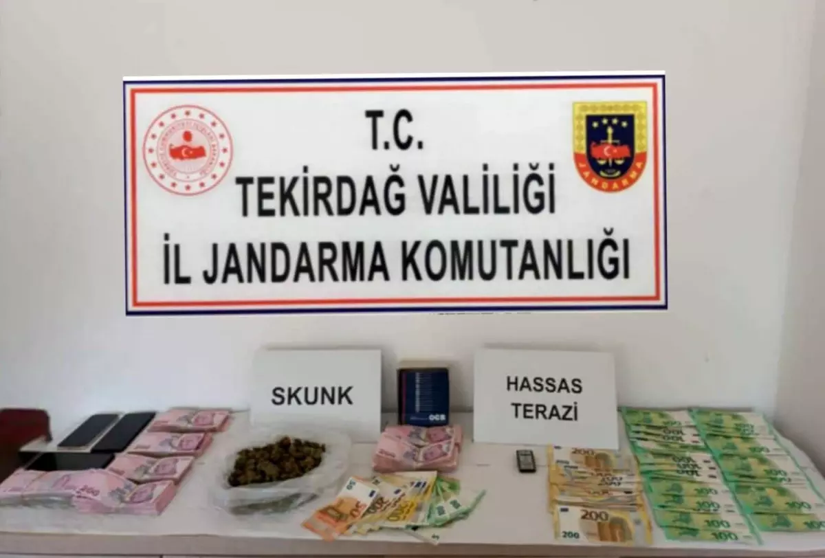 Tekirdağ'da jandarma operasyonlarında bonzai, skunk ve yüklü miktarda para ele geçirildi.