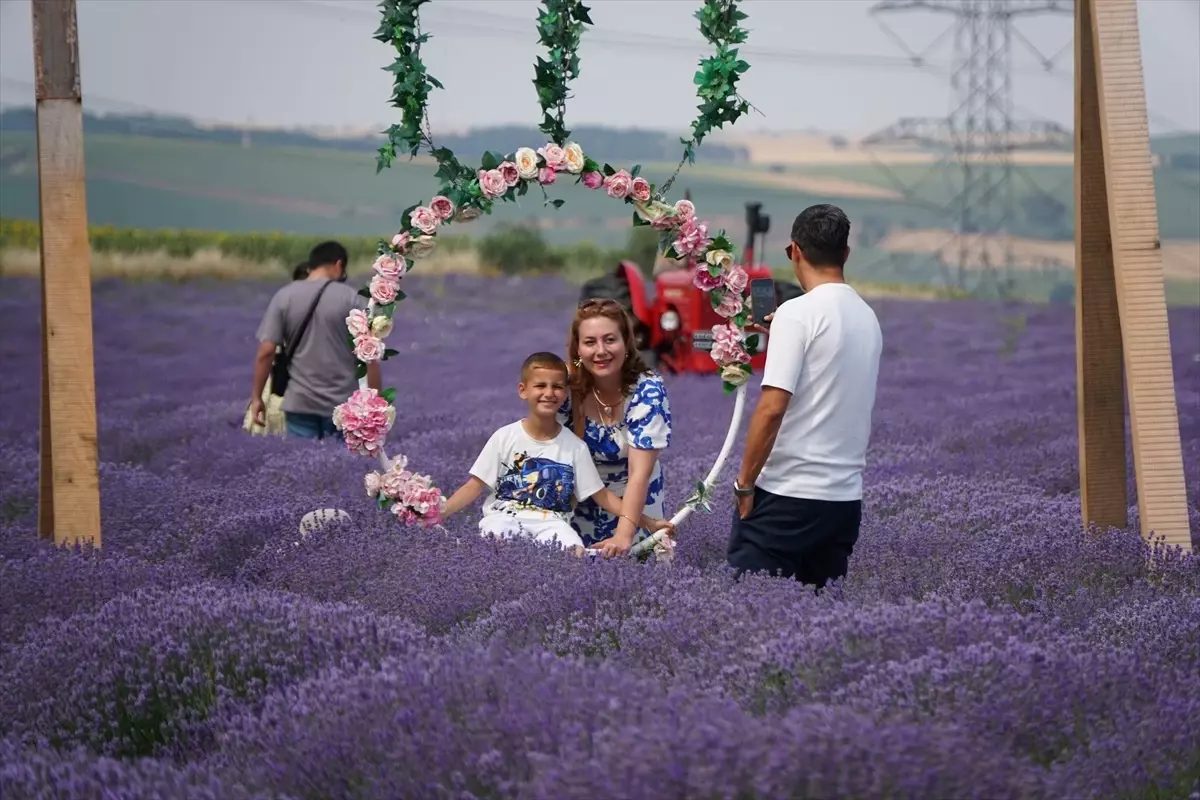 Yakın ülkelerden ve illerden gelenler, lavanta tarlalarında oluşturulan dekorlar önünde en güzel fotoğraf karesini yakalamaya çalıştı.