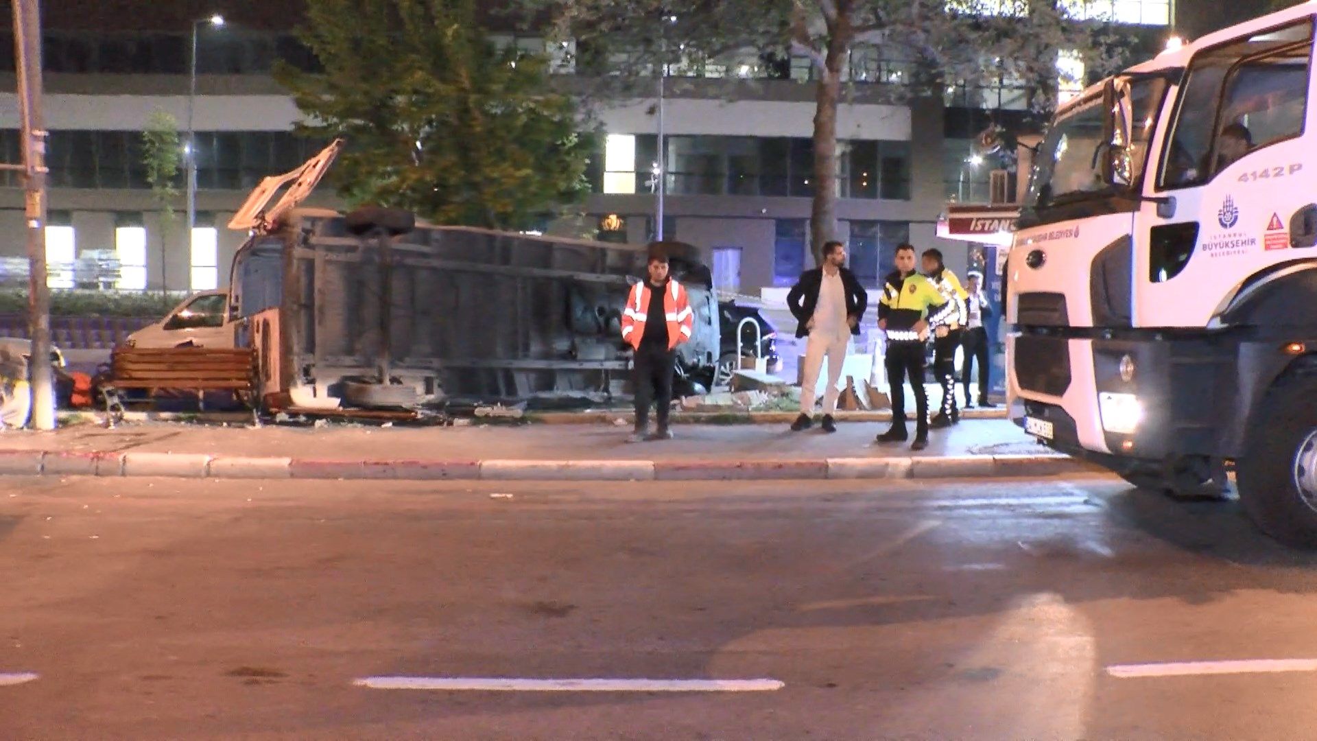 İstanbul Fatih’te saat 23.00 sıralarında bir minibüs, sürücüsünün direksiyon hakimiyetini kaybetmesi sebebiyle kaldırıma çıkarak devrildi.