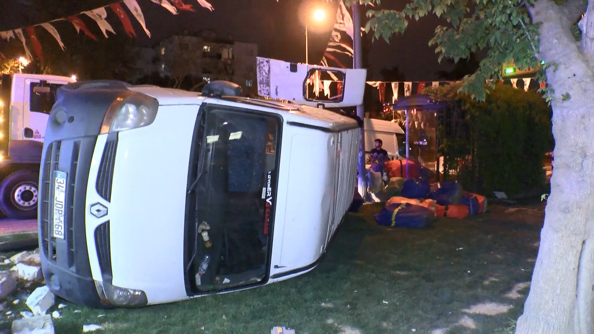 Kaza, Adnan Menderes Bulvarı’nda meydana geldi. Edinilen bilgiye göre, cadde üzerinde seyir halinde olan 34 JDP 68 plakalı minibüs, sürücüsünün direksiyon hakimiyetini kaybetmesi üzerine kaldırıma çıkarak devrildi. Sürücü kazadan yara almadan kurtuldu.
