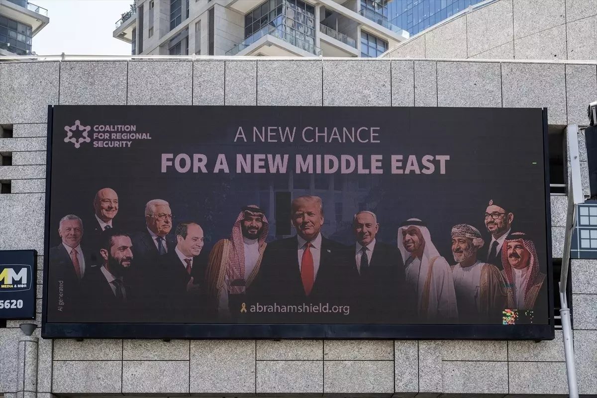 İsrail ile diplomatik ilişkisi bulunmayan Suudi Arabistan, Suriye, Umman ve Lübnan liderlerini ABD Başkanı Donald Trump ve İsrail Başbakanı Binyamin Netanyahu ile yan yana gösteren büyük bir afiş, Tel Aviv’in merkezi bir noktasında reklam panosuna yerleştirildi.