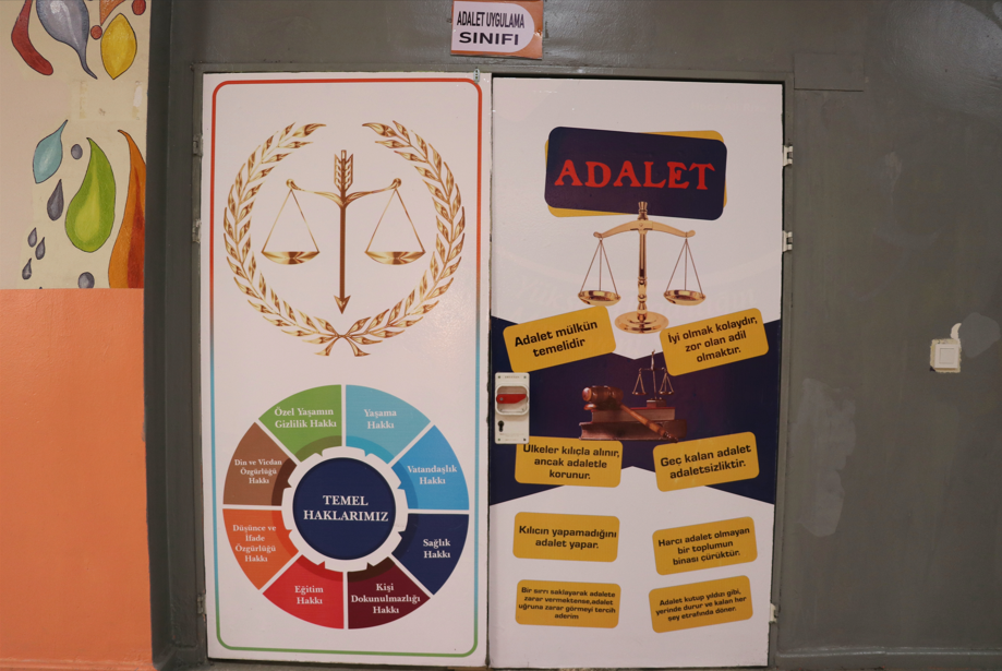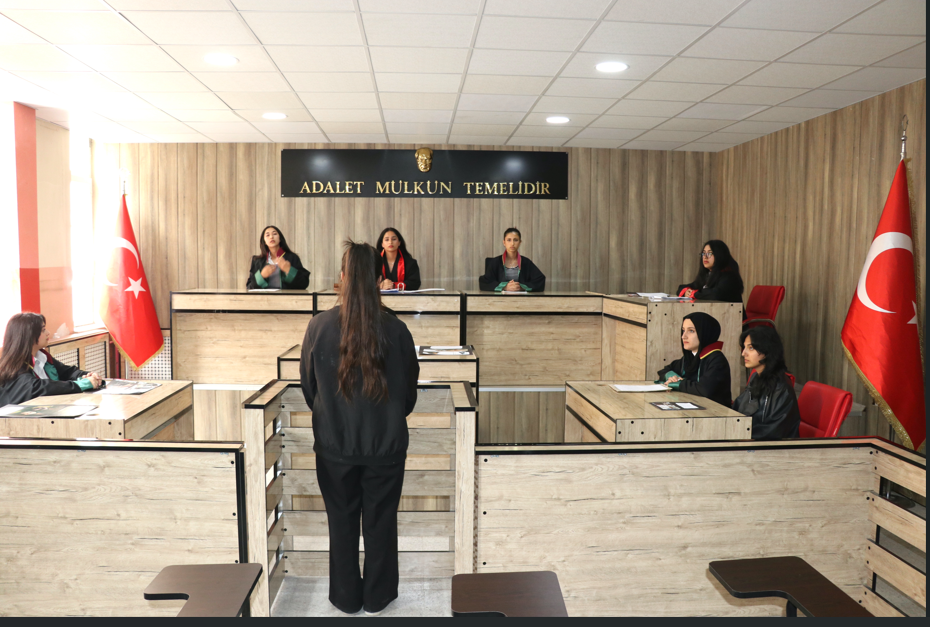 İl merkezindeki Semerkant Mesleki ve Teknik Anadolu Lisesi’nin Adalet Bölümü’nde eğitim gören öğrencilerin temelden deneyim kazanması için bir sınıf birebir adliyelerdeki duruşma salonu gibi dizayn edildi.