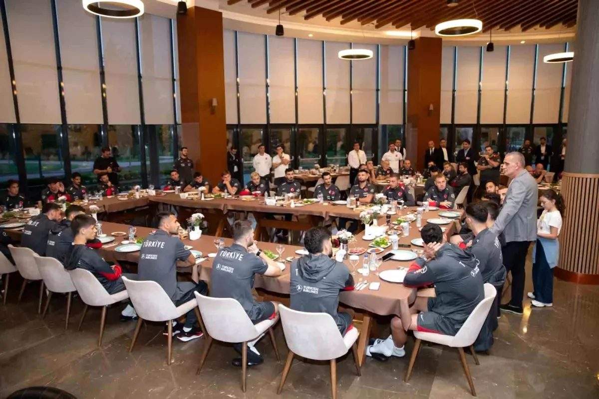 Türkiye Futbol Federasyonu (TFF) Başkanı İbrahim Hacıosmanoğlu, UEFA Uluslar Ligi maçları için kampı devam eden A Milli Takım ile akşam yemeğinde bir araya geldi.