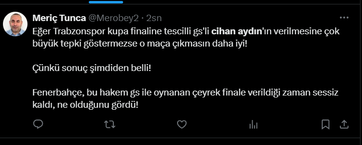 Ancak TFF’nin Cihan Aydın kararı bazı Trabzonsporlu taraftarların tepkilerine neden oldu. Sezon boyunca Cihan Aydın Galatasaraylı olduğu iddialarının dolaşması nedeniyle taraftarlar karara isyan etti.