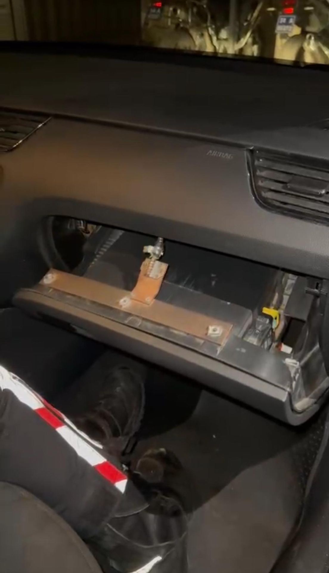 Araçta yapılan incelemelerde polis, direksiyonun solundaki far düğmesini sağ tarafa çevirip öne doğru çektikten sonra orta kısmında bulunan kolçağın kapağının açıldığını gördü.