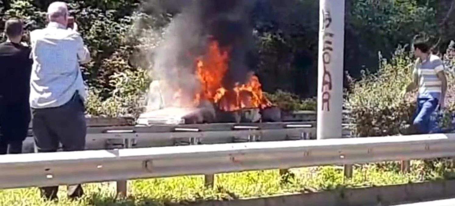 Alınan bilgiye göre, H.G. yönetimindeki 06 PKU 72 plakalı otomobilden Trabzon’dan Rize istikametine giderken motor bölümünden dumanlar çıkmaya başladı. Bu sırada sürücü H.G. Karadeniz Sahil Yolu’nun Sürmene ilçe geçişinde aracını yol kenarına çekerek yardım istedi. Araç alev alev yanmaya başlarken, ihbar üzerine olay yerine polis ve itfaiye ekipleri sevk edildi. İtfaiye ekipleri yangına müdahale ederken, yanan araç kullanılamaz hale geldi. O anlar ise yoldan geçen vatandaşlar tarafından cep telefonu ile kaydedildi. – TRABZON