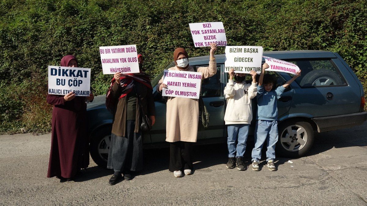 Kokudan şikayetçi olan mahalleden bir grup, ellerinde ‘Dikkat bu çöp kalıcı etki bırakır’, ‘Bu bir yatırım değil Araklı’nın yok oluş hikayesidir’, ‘Tercihiniz insan hayatı yerine çöp olmuştur’ yazılı pankartlarla tesis önünde toplandı.