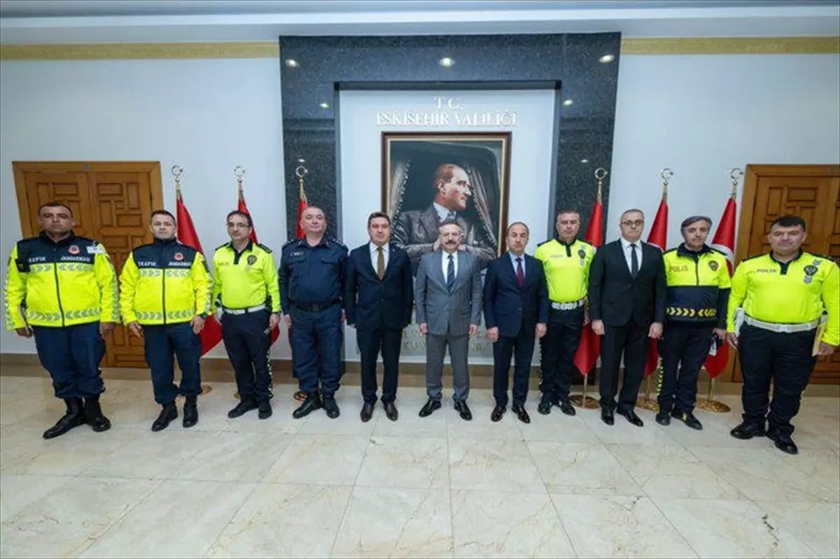 Eskişehir Valisi Hüseyin Aksoy, trafik güvenliğinin sağlanmasında gösterdikleri özverili çalışmalardan dolayı İl Emniyet Müdürlüğü ve İl Jandarma Komutanlığına bağlı trafik personeline başarı belgesi verdi.