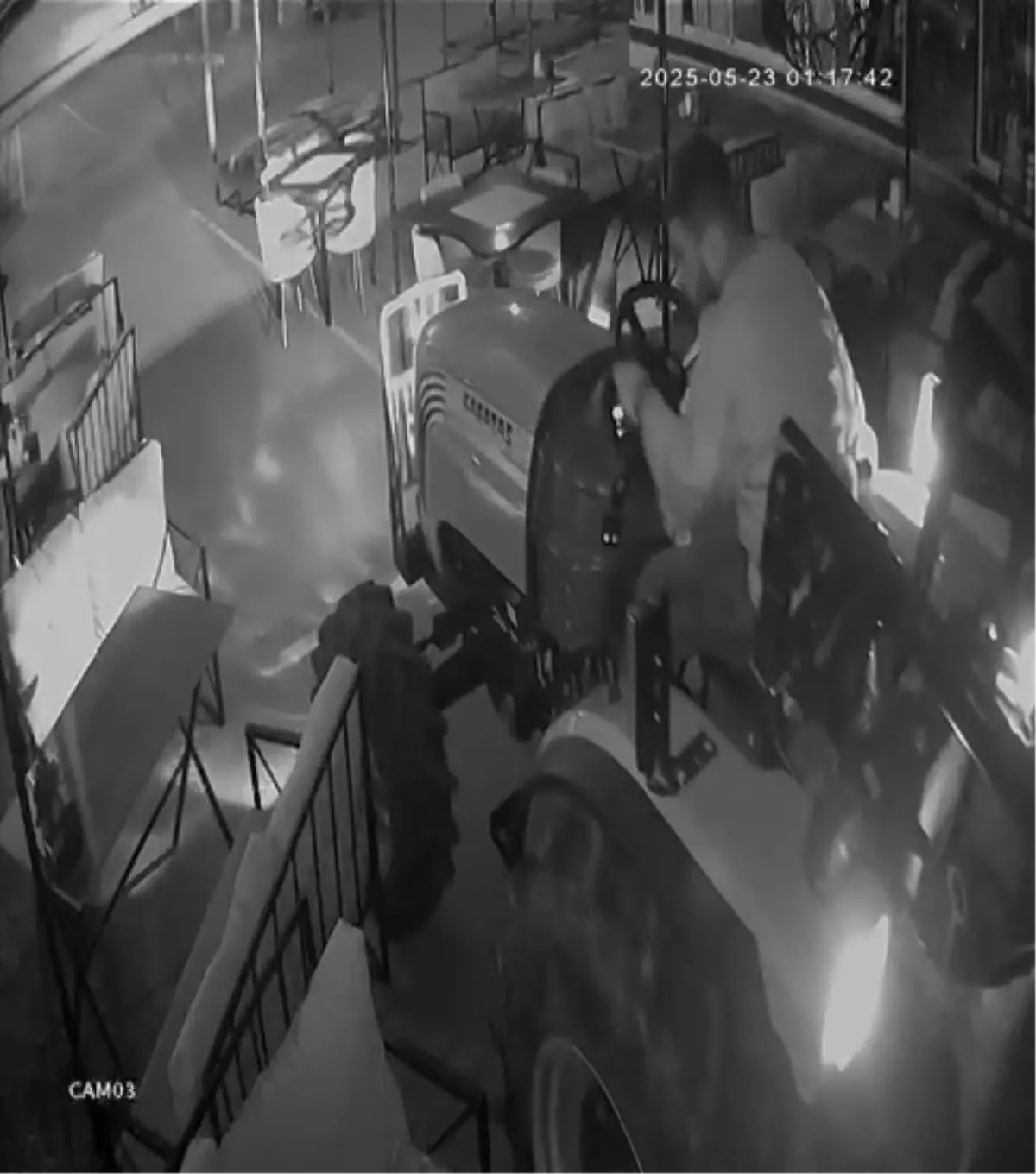 SAKARYA’nın Kocaali ilçesinde traktör sürücüsü, gece saatlerinde bir kafenin dış oturma alanına girip, alanda tur attı. Kafede hasar oluşurken, o anlar güvenlik kamerasına yansıdı.