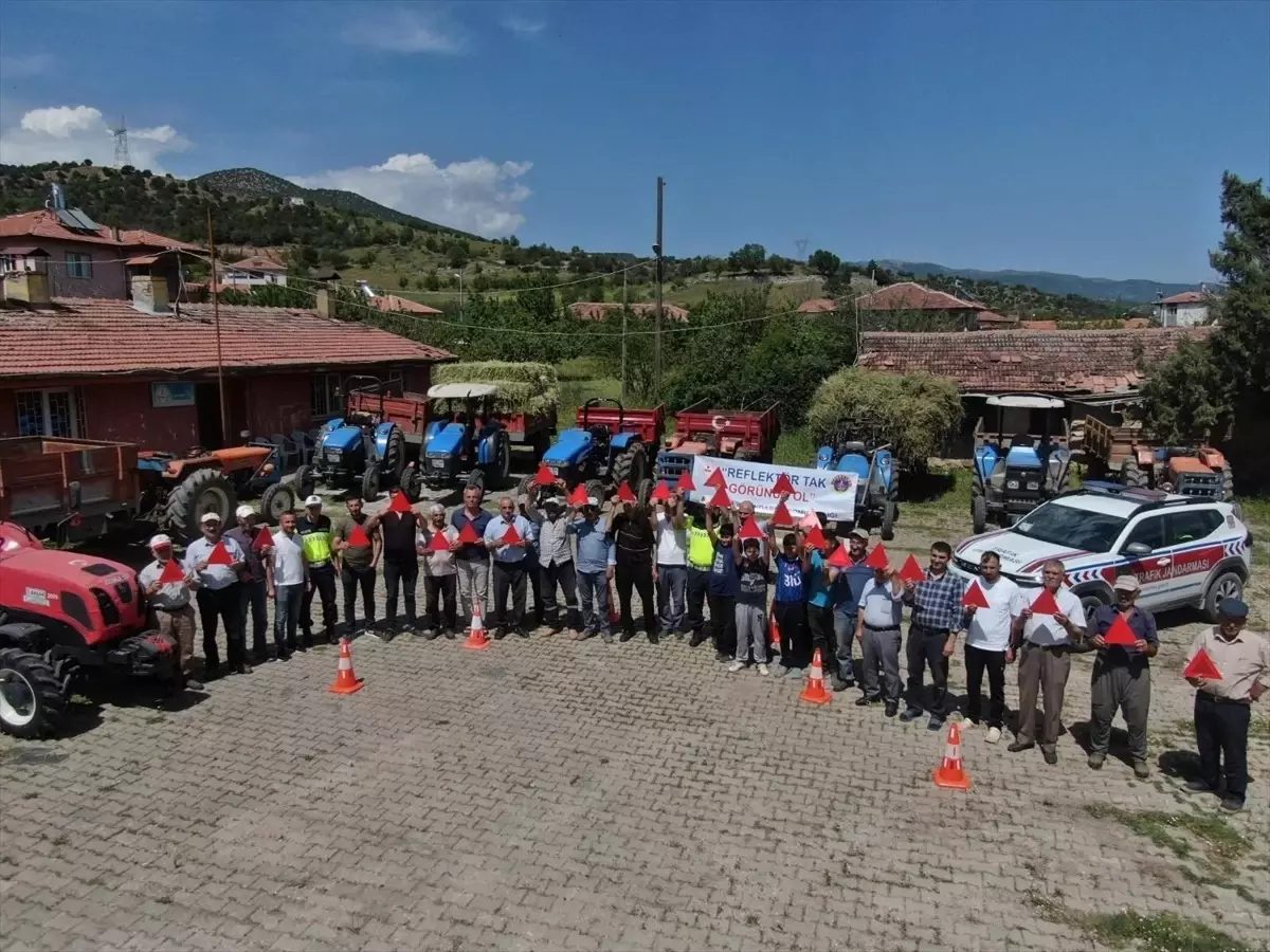 Amasya'da 86 traktör sürücüsüne üçgen reflektör kullanımı hakkında eğitim verildi.