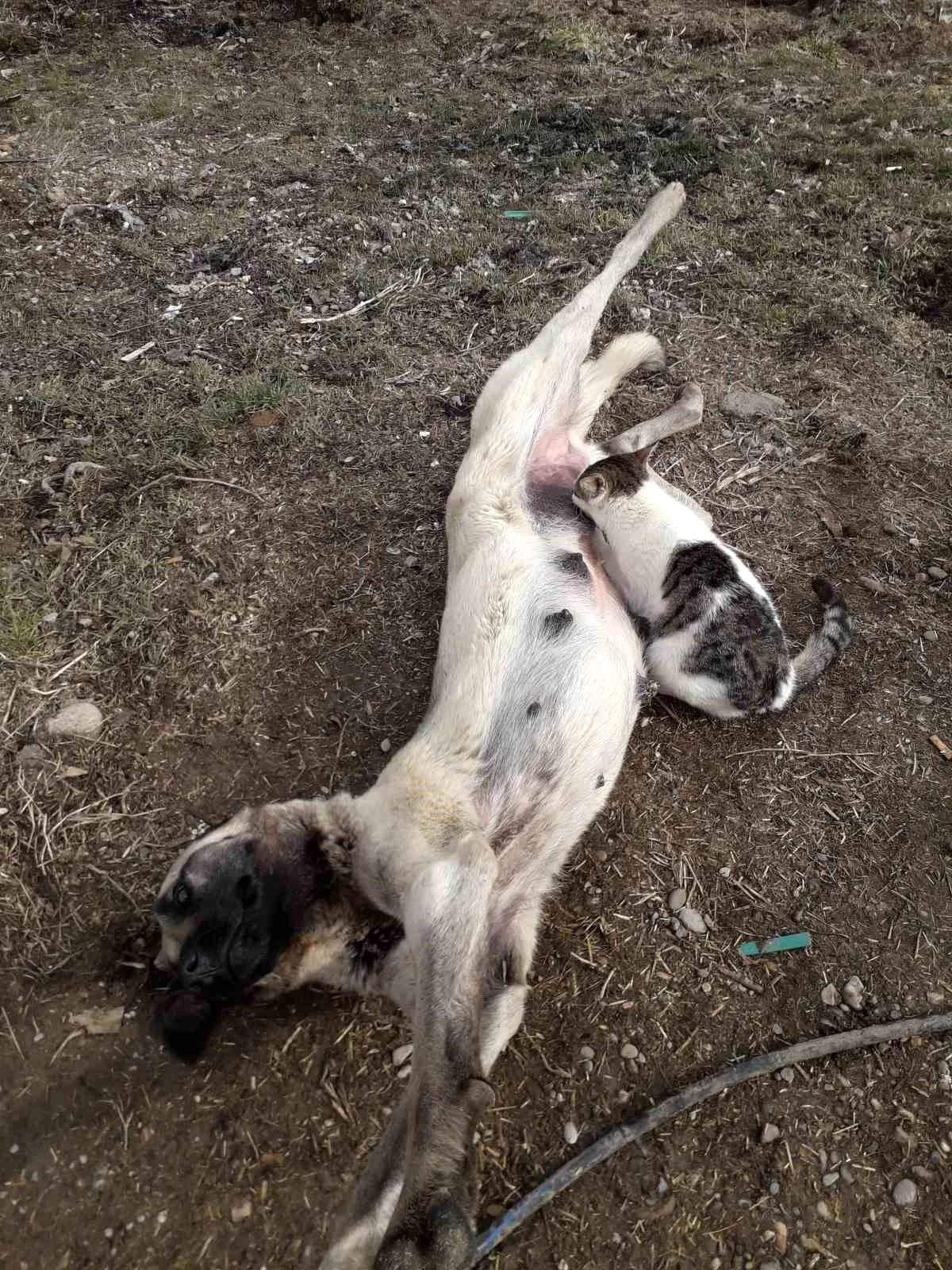 Olay Tunceli merkeze bağlı Atlantı köyünde yaşandı. Taylan Sinbat isimli vatandaş, kedi ile köpeğin yakınlaştığını gördü. Cep telefonunu çıkaran Sinbat, o anları kayıt altına almaya başlarken, hiç ummadığı bir durum ile karşı karşıya geldi. Birbirleri ile didişmeleri ve kavgalarıyla bilinen hayvanların, adeta anne ve yavrusu şeklinde hareket etmesi izleyenleri duygulandırdı. Usulca köpeğin yanına sokulan kedi, patisiyle yerini yaptıktan sonra köpekten süt emdi. O anlar, izleyenlerin de içini ısıttı. – TUNCELİ