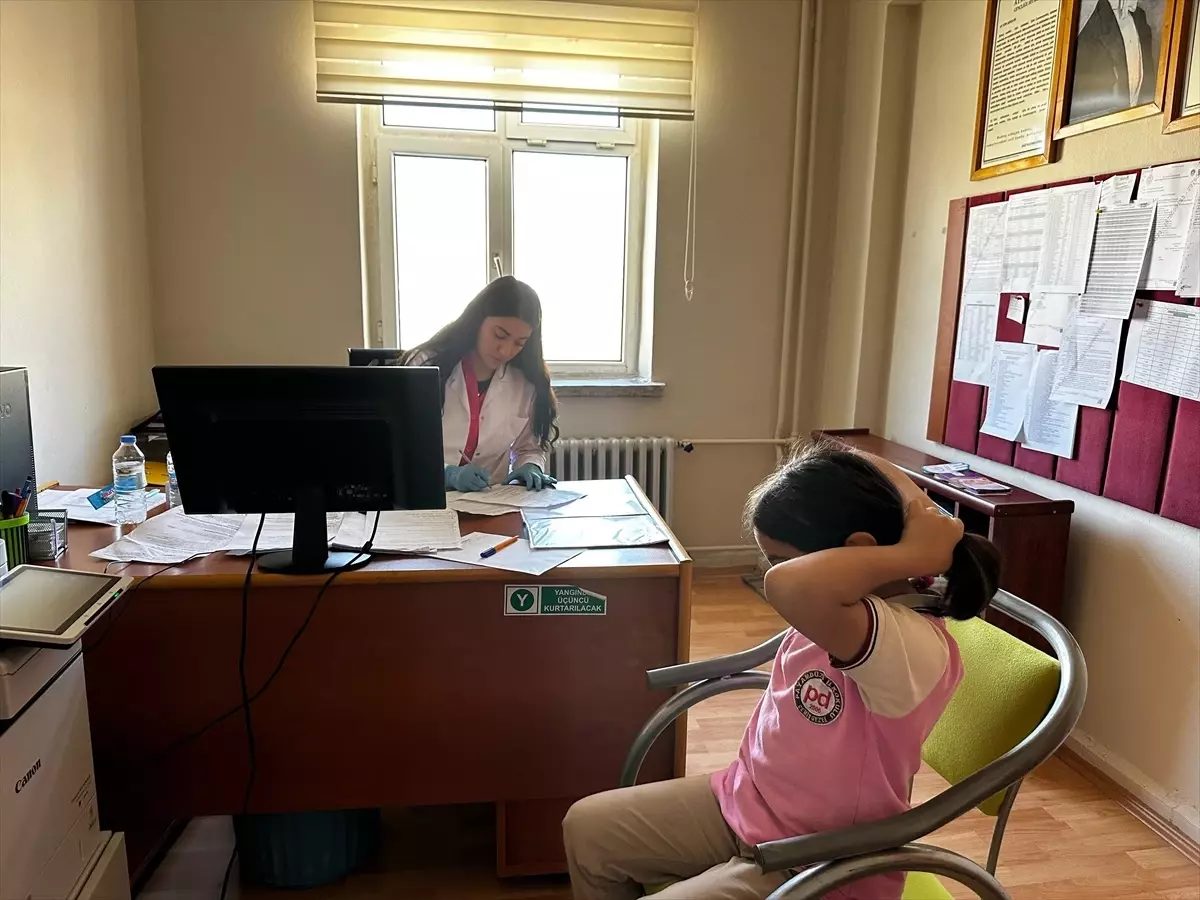 Toplum Sağlığı Merkezi ekiplerinin yürüttüğü çalışmayla üç okuldaki 200’ün üzerinde öğrencinin muayene ve tetkikleri, Dr. Büşranur Yüksel ve beraberindeki sağlık personeli tarafından yapıldı.