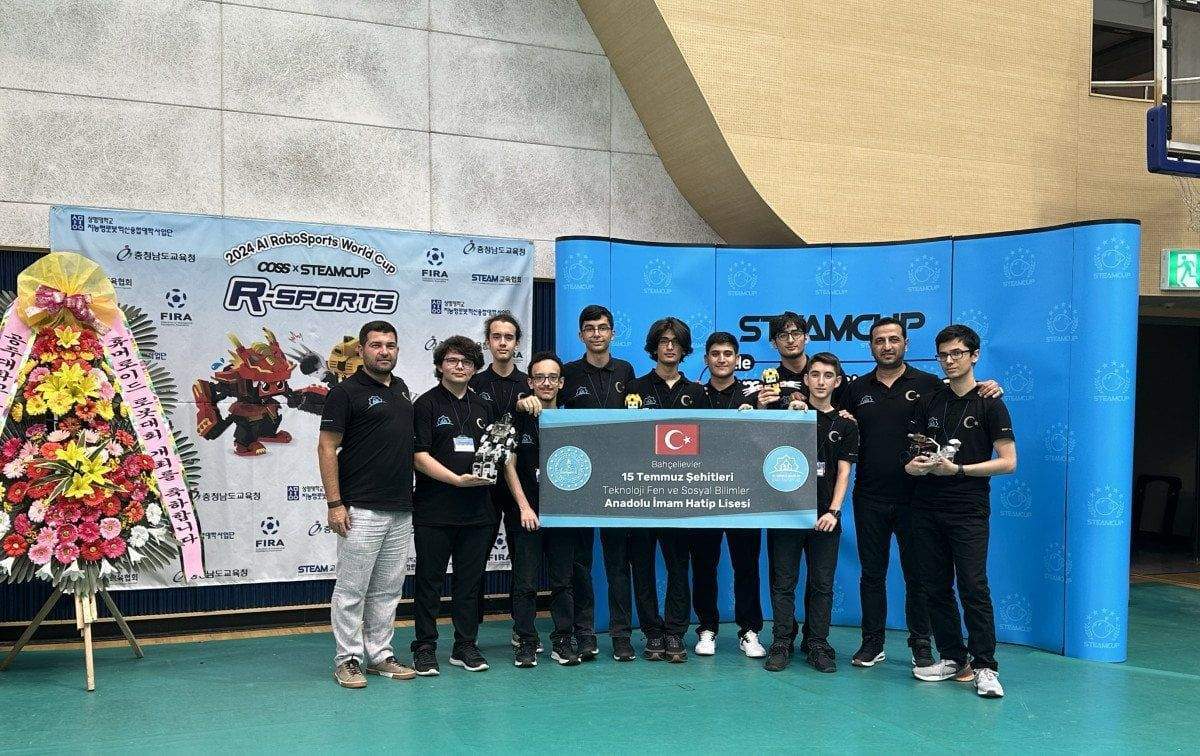 Bahçelievler 15 Temmuz Şehitleri Fen ve Teknoloji Anadolu İmam Hatip Lisesi takımı “AI & Robotics Team”, Güney Kore’nin başkenti Seul’de düzenlenen robot yarışmasında Dünya Şampiyonu oldu. Takım öğrencilerinin hedefi gelecekte bu alanda ilerlemek.