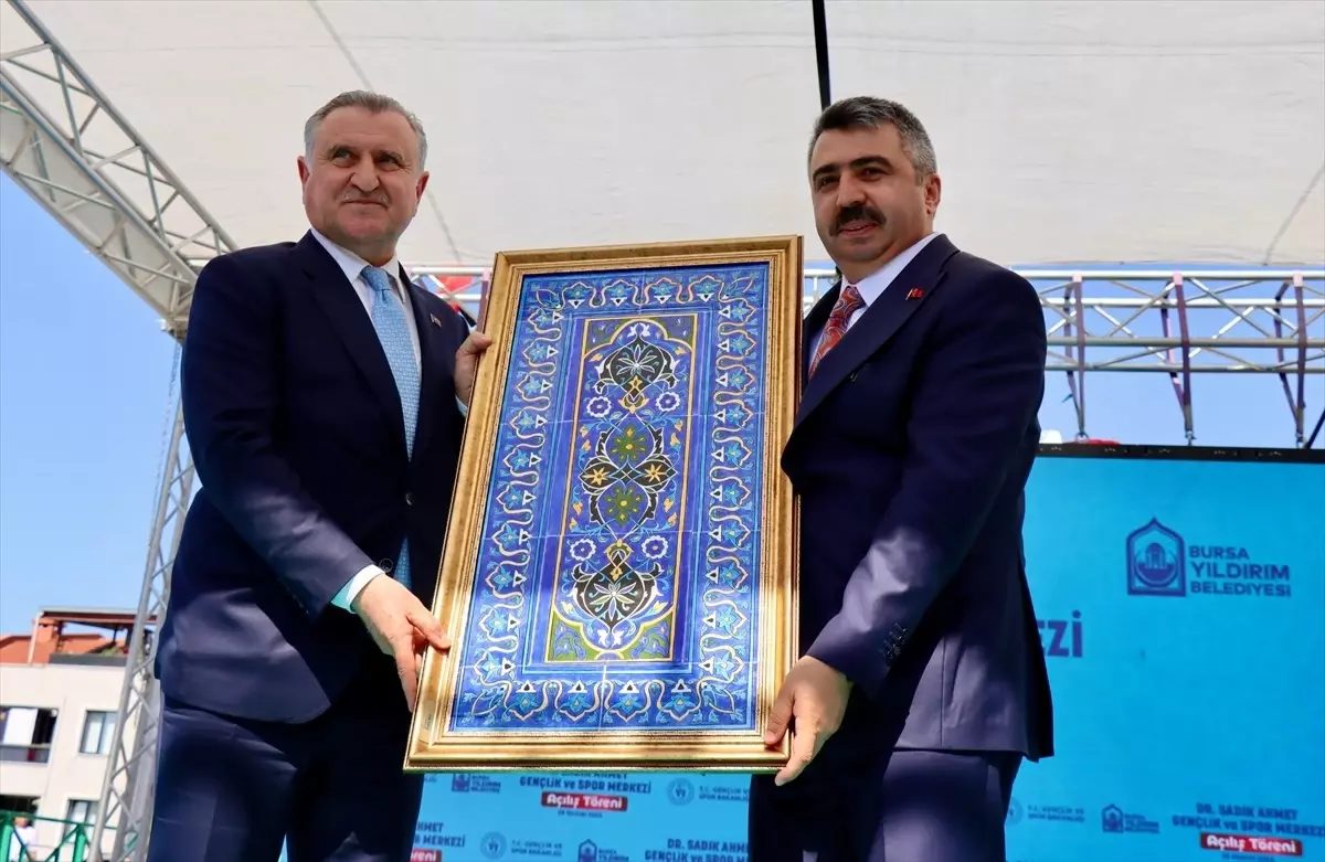 Daha sonra Yıldırım Belediyesi tesislerinde çalışarak, çeşitli yarışmalarda dereceye girenlere Bakan Bak tarafından hediye verildi, gençlik ve spor merkezinin açılış kurdelesi kesildi.
