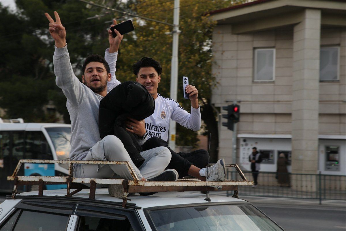 Suriyeliler, kentin muhtelif yerlerinde ise araçlarla konvoy yaparak sevinç gösterisinde bulundu.