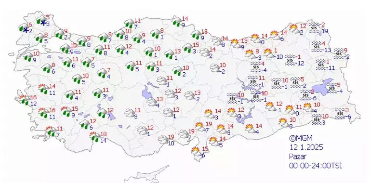 Meteoroloji Genel Müdürlüğü tarafından yapılan son tahminlere göre: Ülkemiz genelinin parçalı yer yer çok bulutlu, Marmara, Ege (Afyonkarahisar hariç), Batı Karadeniz, Güneydoğu Anadolu’nun doğusu, Şırnak çevrelerinin yağmur ve sağanak, Bitlis, Van ve Hakkari çevrelerinin karla karışık yağmur ve kar yağışlı geçeceği tahmin ediliyor.