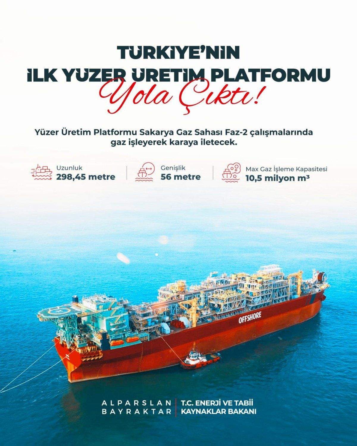 5 milyon hanenin de doğalgaz ihtiyacını karşılayacak olan yüzer üretim platformunun yola çıktığını ise Enerji ve Tabii Kaynaklar Bakanı Alparslan Bayraktar duyurdu.