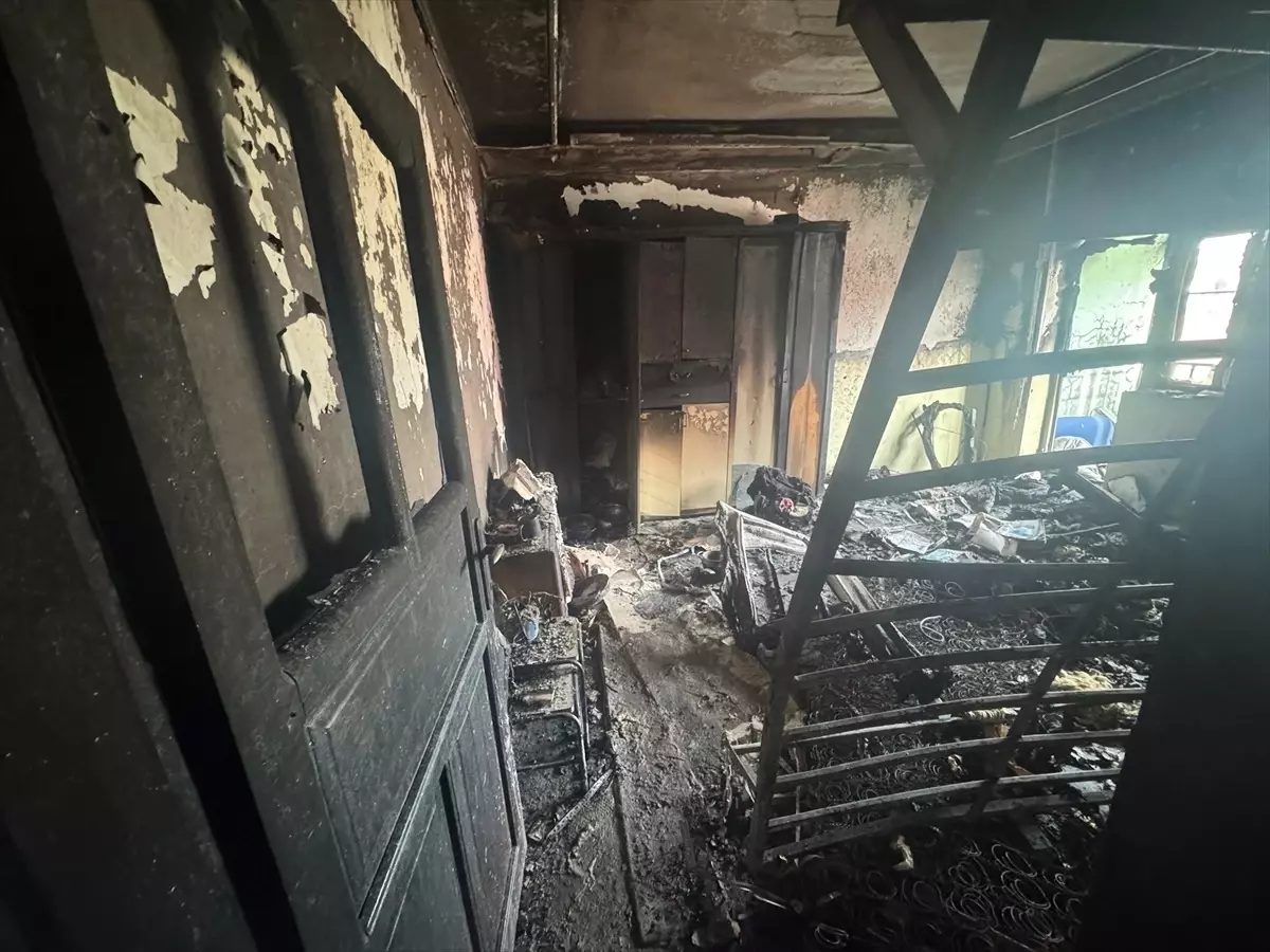 Kısa sürede söndürülen yangında ev ve içerisindeki eşyalar kullanılamaz hale geldi.