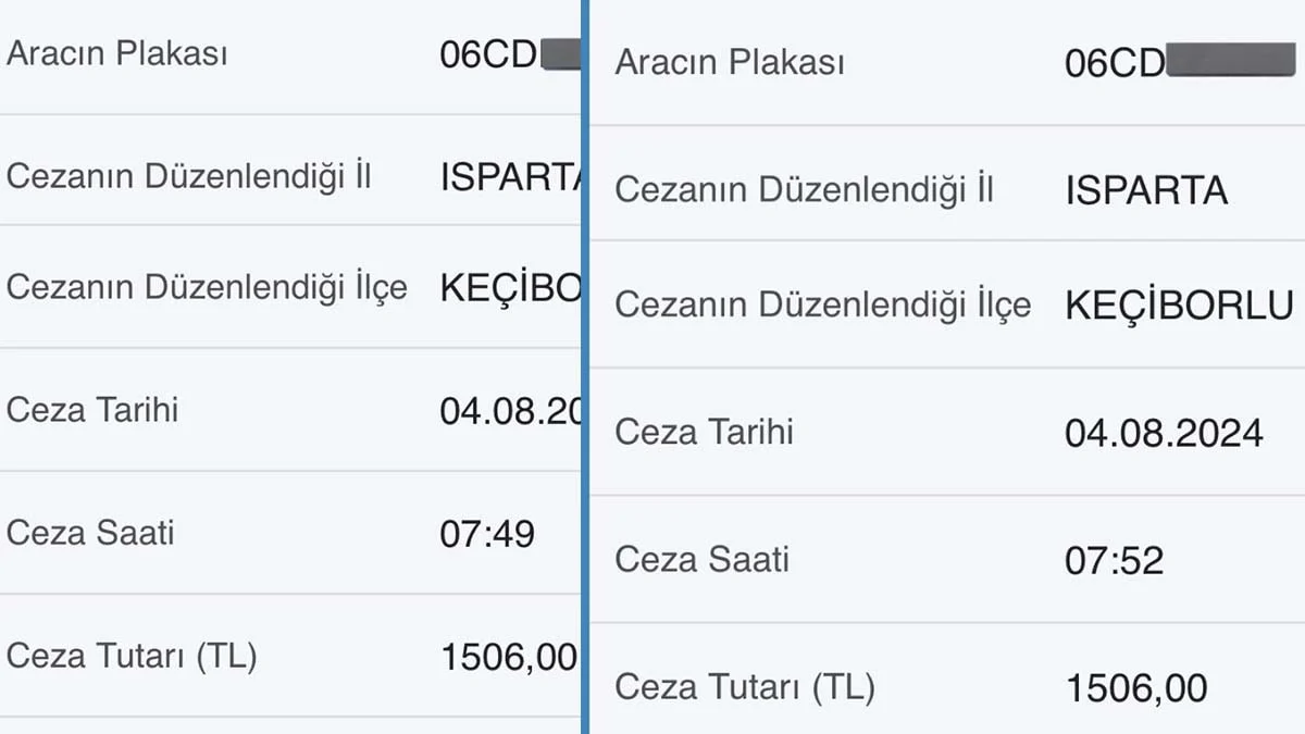 Isparta’da bir vatandaş ise 3 dakika içinde 2 kez radara yakalandı, 3012 lira ceza kesildi.