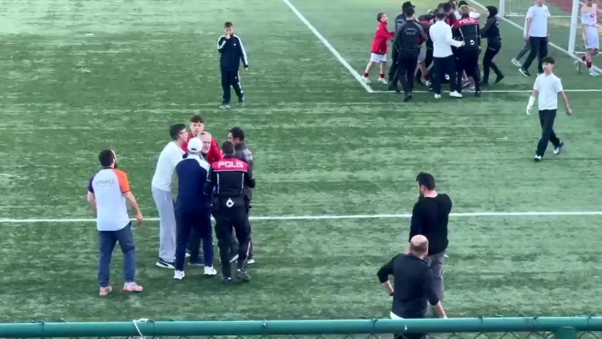 Karabük’te oynanan U-15 Futbol Ligi final maçında son dakika golü sonrası yaşanan gerginlik polis ekiplerince engellenirken, o anlar cep telefonu kamerası ile görüntülendi.