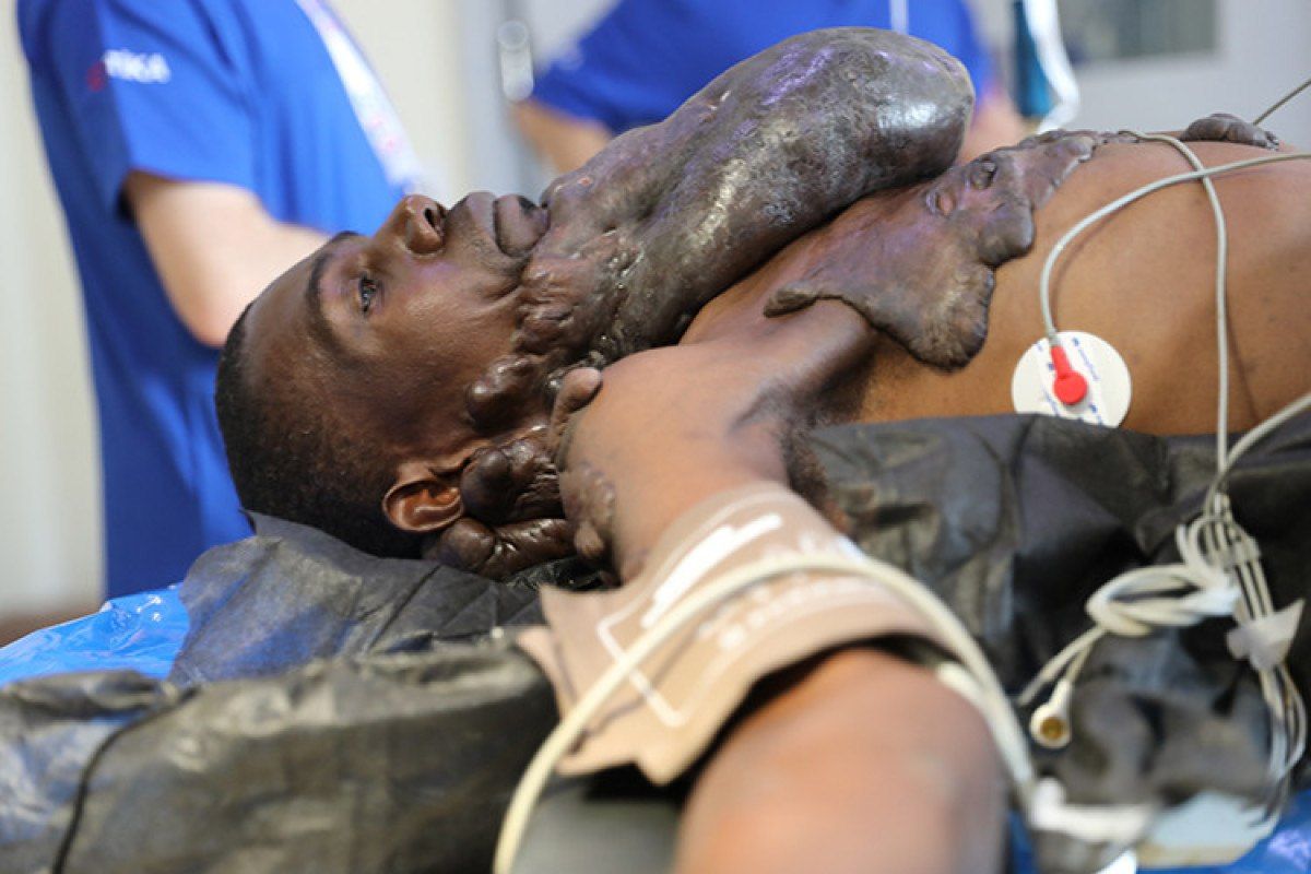 Tüm Afrika’nın Dostları Derneği ile Türk İşbirliği ve Koordinasyon Ajansı Başkanlığı (TİKA) ve Uganda Sağlık Bakanlığı işbirliğiyle Uganda’da düzenlenen sağlık organizasyonunda Ugandalı bir hastadan yaklaşık 5 kilogramlık “keloid” kitlesi alındı.