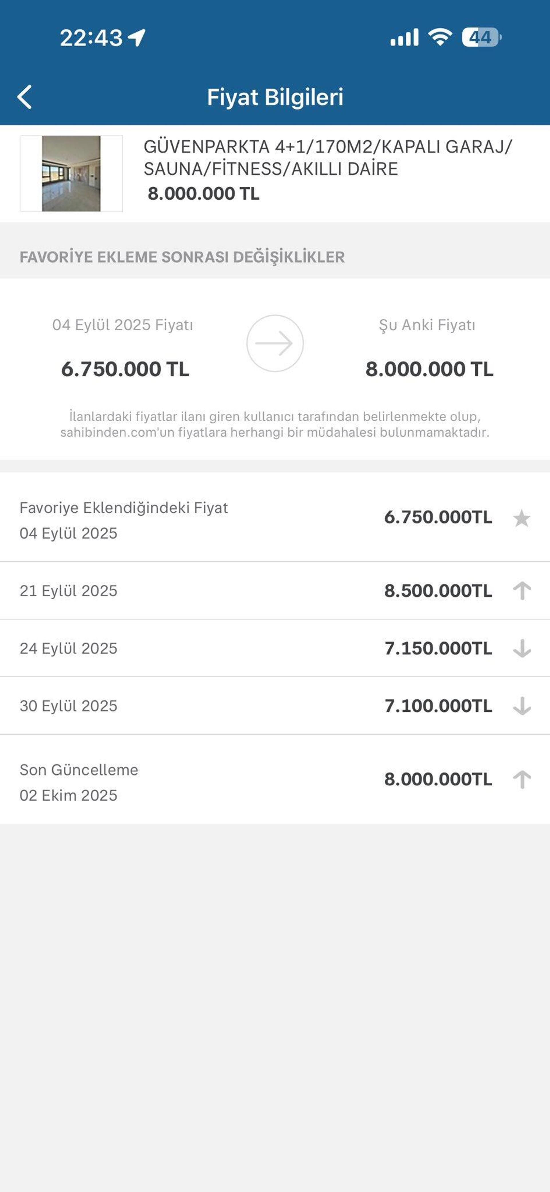 B.K. isimli bir kişi sosyal medyada, “Bir ilan buldum. Ülkede iki günde savaş çıkmış olacak ki, 900 bin lira artış olmuş. Bu işlerin standartı yok mu?” diyerek isyan etti. B.K.’nın paylaşımına göre, “Güvenpark’ta sauna, fitness, akıllı daire” başlığıyla yayınlanan ilanda daireye, 4 Eylül’de 6 milyon 750 bin lira istendi. Fiyat, 21 Eylül’de 8 milyon 500 bine çıktı, 24 Eylül’de 7 milyon 150 bine indi, 30 Eylül’de ise 7 milyon 100 bine düştü. 2 Ekim’de ise ilanın fiyatı 8 milyon lira olarak güncellendi.
