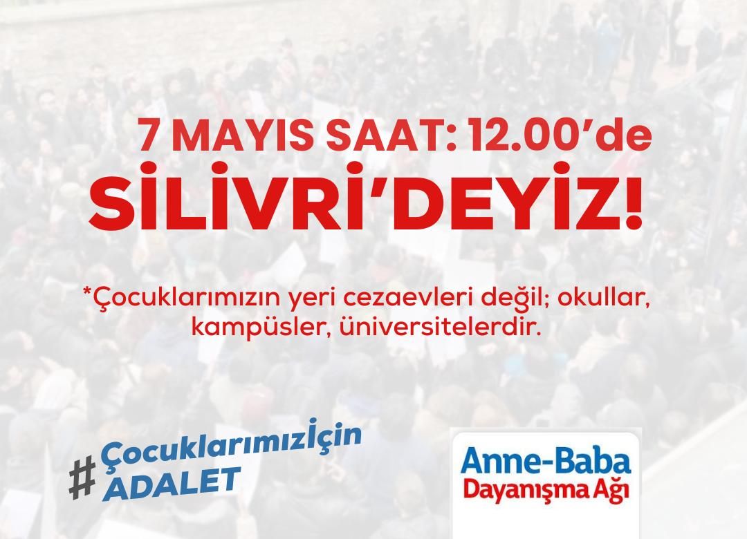 Açıklamanın devamında, “7 Mayıs Çarşamba 12:00’de sendikaları, odaları, gönüllü çalışma yürüten dernekleri, vakıfları, platformları tüm kuruluşları, siyasi partileri, çocuklarımızın sıra arkadaşlarını, haftalardır desteğiyle yanımızda olan herkesi Silivri’de çocuklarımızın sesine ses olmaya çağırıyoruz. Her destek çocuklarımız için biz anne babalar için çok değerli.” denildi.