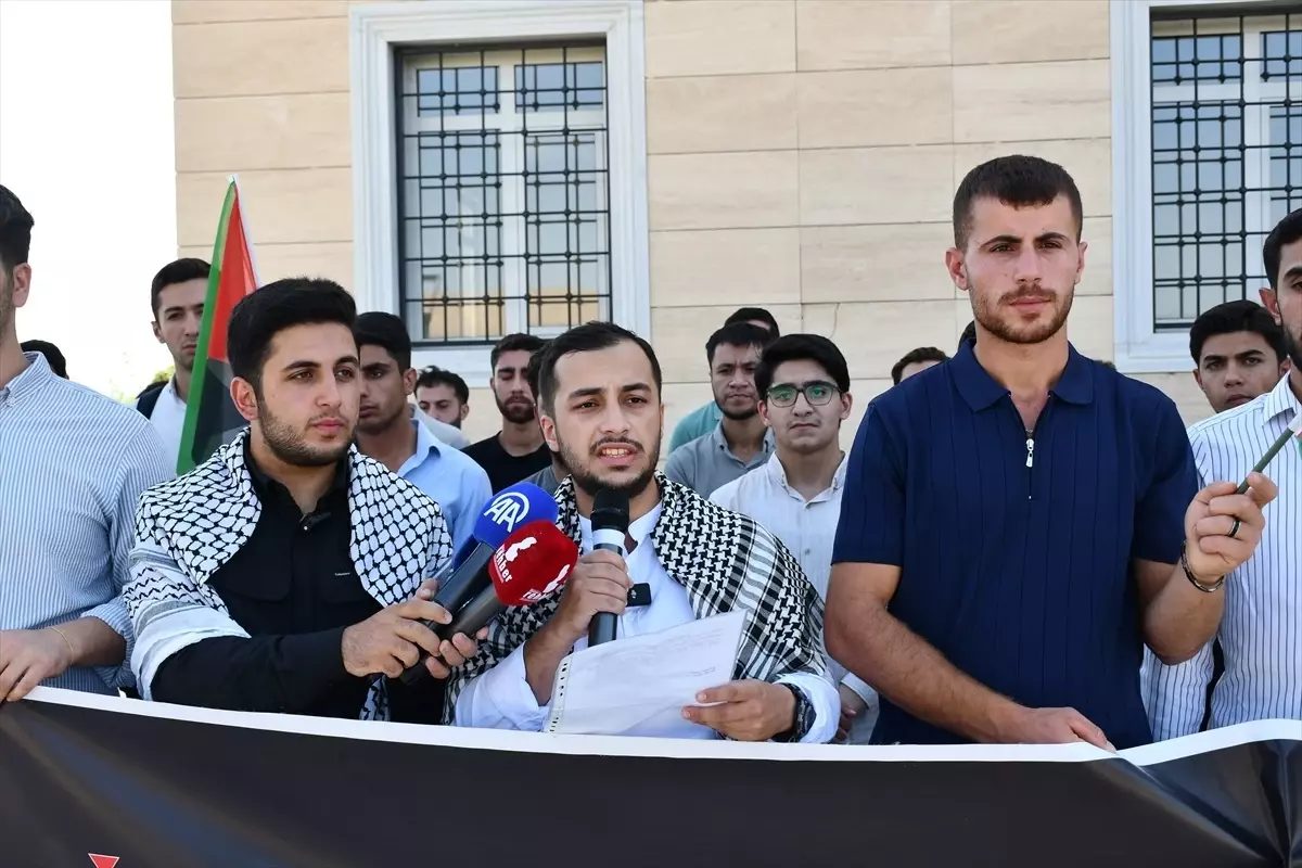 Dicle Üniversitesi Hukuk Fakültesi 3. sınıf öğrencisi Ali Sav, öğrenciler adına yaptığı açıklamada, Filistin’in özgürlüğü, adalet ve insanlık için toplandıklarını söyledi.