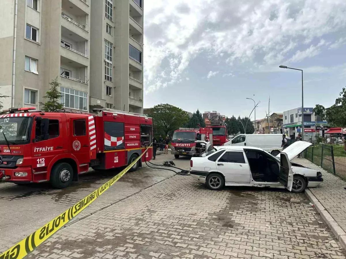 Edinilen bilgilere göre, Sarayaltı Mahallesi Celal Bayar Caddesi üzerinde bulunan 8 katlı binanın giriş katında oturan koca N.U. (45) ile eşi E.U. (36) arasında sabah saatlerinde tartışma çıktı. Tartışmanın ardından E.U. adlı kadın, Uşak İl Emniyet Müdürlüğü’ne giderek müracaatta bulundu. E.U. emniyette bulunduğu esnada kocası N.U. ise ikamet ettikleri daireyi ve binanın önünde bulunan E.U’ya ait iki aracı yakarak olay yerinden kaçtı.