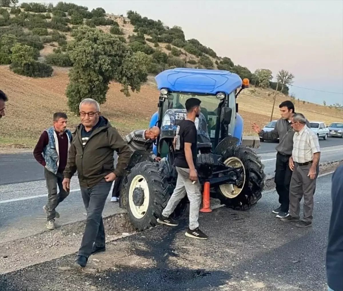 Ulubey- Eşme kara yolunda H.G. (60) yönetimindeki 35 AEF 158 plakalı otomobil, İnay köyü yakınlarında, tali yola dönüş yapan V.K. (61) idaresindeki 64 LT 928 plakalı traktörle çarpıştı.