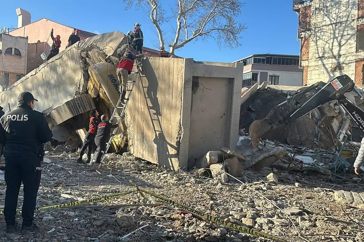 Uşak’ta yıkımı yapılan binanın bir bölümünün iş makinesinin üzerine çökmesi sonucu bir kişi enkazda kaldı, kurtarma çalışması başlatıldı.