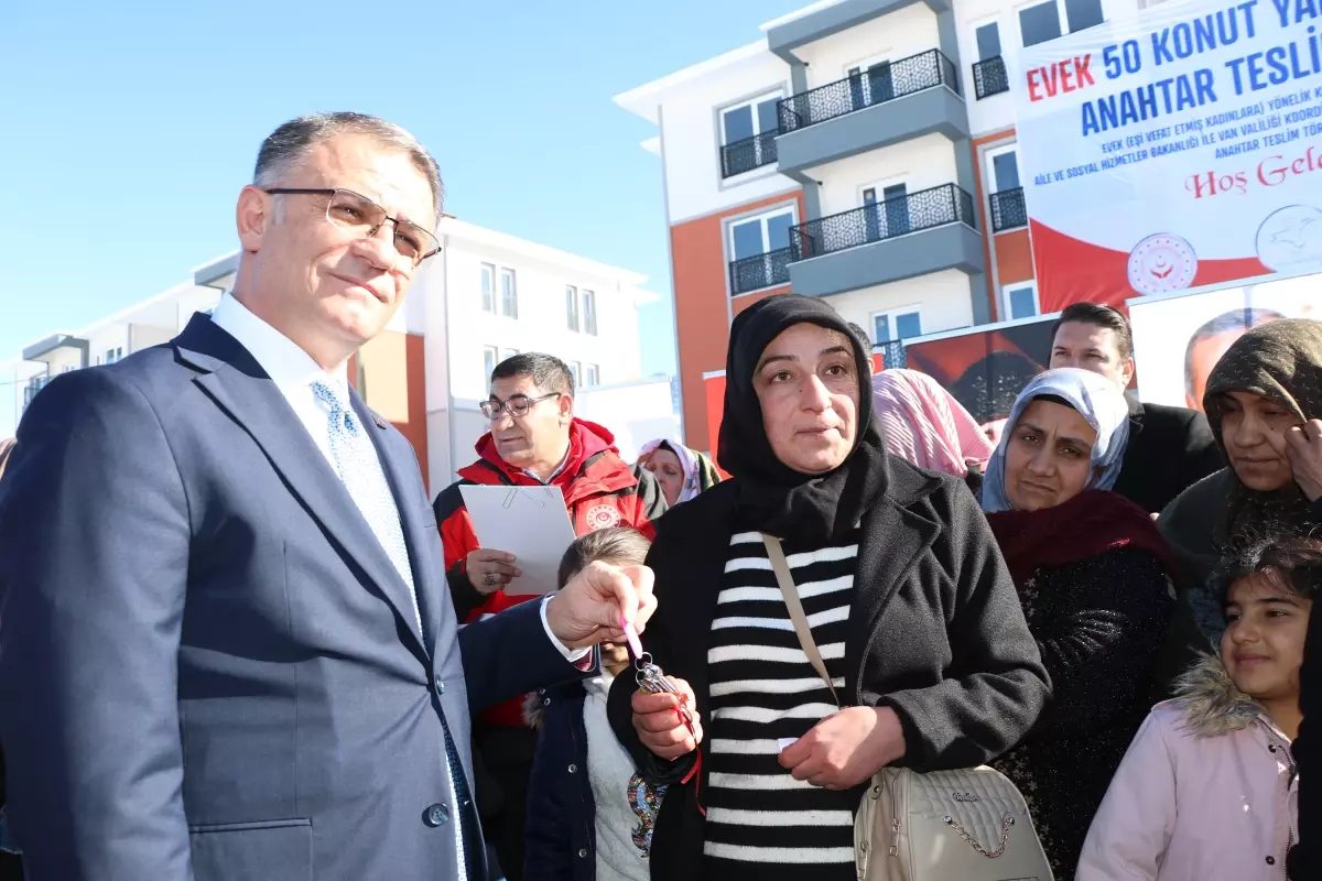 VAN’ın merkez İpekyolu ilçesinde, ‘Eşi Vefat Etmiş Kadınlara Yönelik Yardımlar (EVEK)’ projesi kapsamında TOKİ tarafından yapılan 51 konutun anahtarları, Vali Ozan Balcı’nın katıldığı törenle, hak sahiplerine teslim edildi.